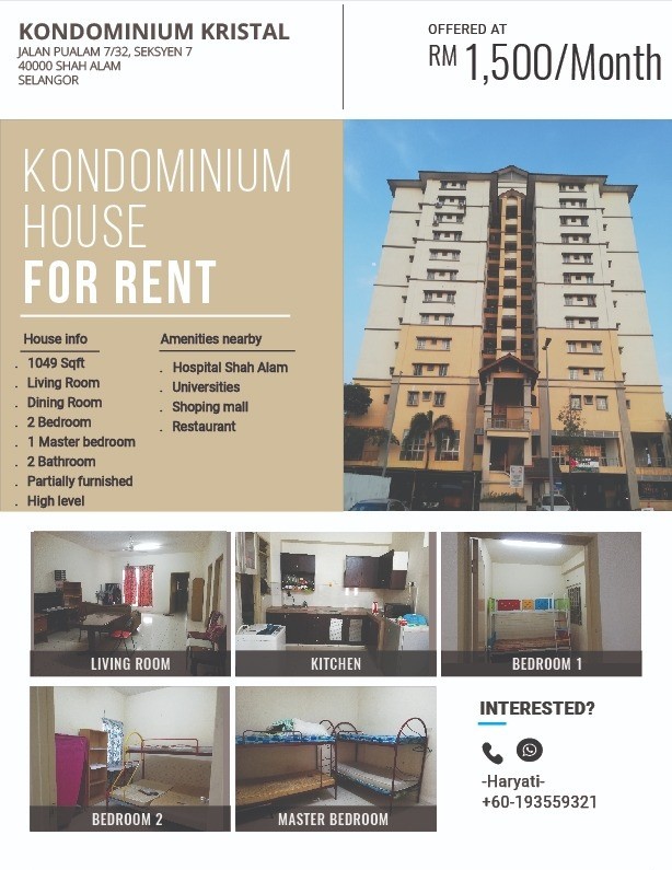 21 Mar 2022 - mudahmy. Amirah 0148203206 httpamrhwasapmy Kondo Kristal Seksyen 7 Details- 3 bilik 2 tandas Tingkat 8 ada lif Boleh masuk 10 orang Rumah lengkap dengan semua barang Kemasukan segera Min kontrak setahun. Apartment - For Rent - Building Area.